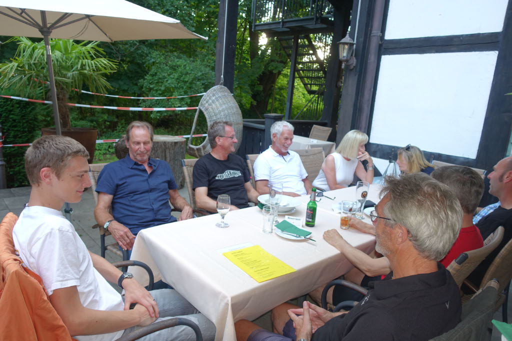 Nahezu pünktlich um 19:30 traf der Porsche-Tross danach im Grünen Jäger ein. Hier hatten sich auf der für uns reservierten Terasse weitere Porsche-Freunde eingefunden. Es war eine