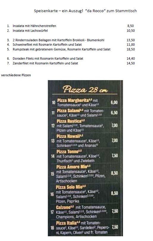 Damit es beim geselligen üblichen Essen im “da ROCCO“ keine zeitlichen Verzögerungen gibt, ist mit Eurer Anmeldung auch eine Essenbestellung erforderlich. Siehe dazu die