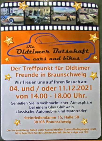 10 Jahre „Die Oldtimer-Botschaft“ und dann finden wir einen entspannteren Rahmen für eine gesellige Veranstaltung vor! Ich wünsche allen, trotzt allem, eine gute Weihnachtszeit und