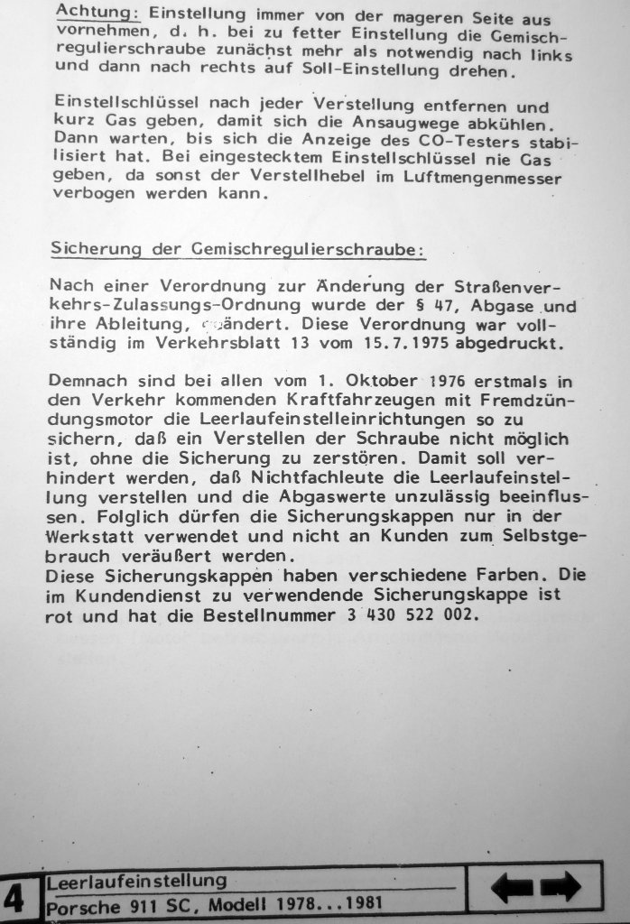 Diese Tätikeiten sollten nur von einem Porsche- Fachmann mit üblichen CO-Tester ausgeführt werden!