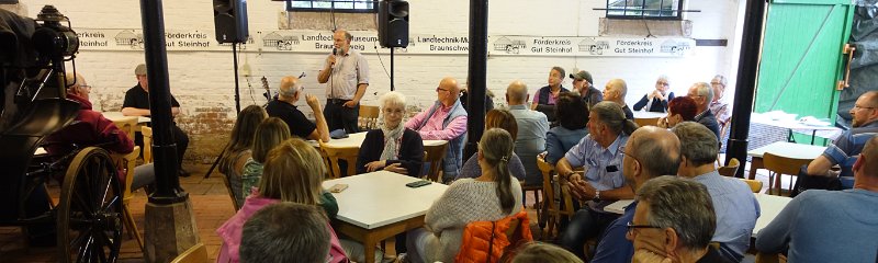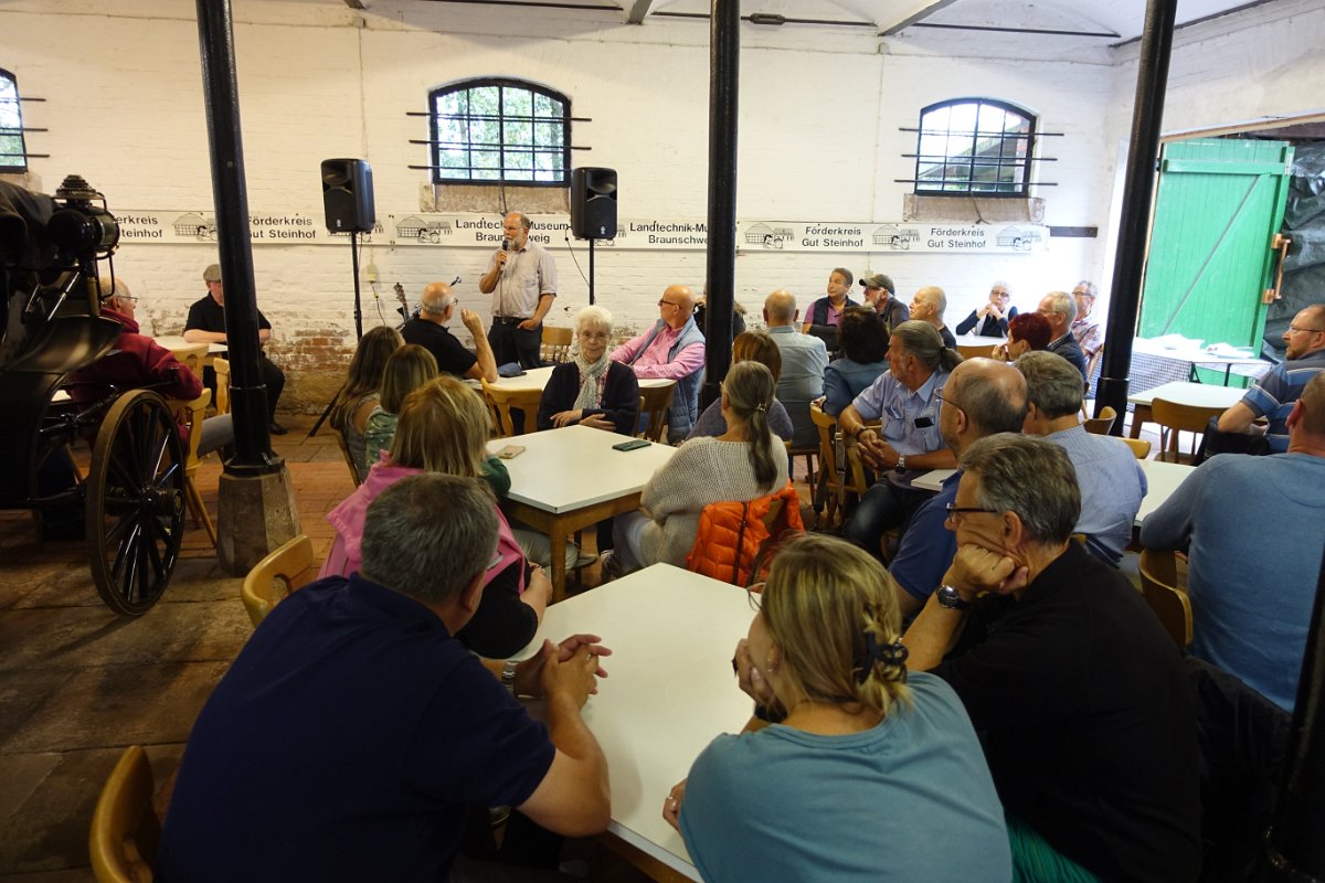 Unser August-Stammtisch fand im Landtechnik-Museum Braunschweig - Gut Steinhof statt. Erstmals hatten wir auch Life-Musik dabei. Fritz Köster, die Blues-Power Stimme und Gittarre der sehr bekannten Formation "Blues Power" sorgte für die musikalische Unterhaltung. Der besondere Grund: Eine Nachfeier von Manfred seinem 80. Geburtstag. Herzlichen Dank an alle Teilnehmer, Helfer, an Fritz Köster und dem Förderverein Gut Steinhof e. V.