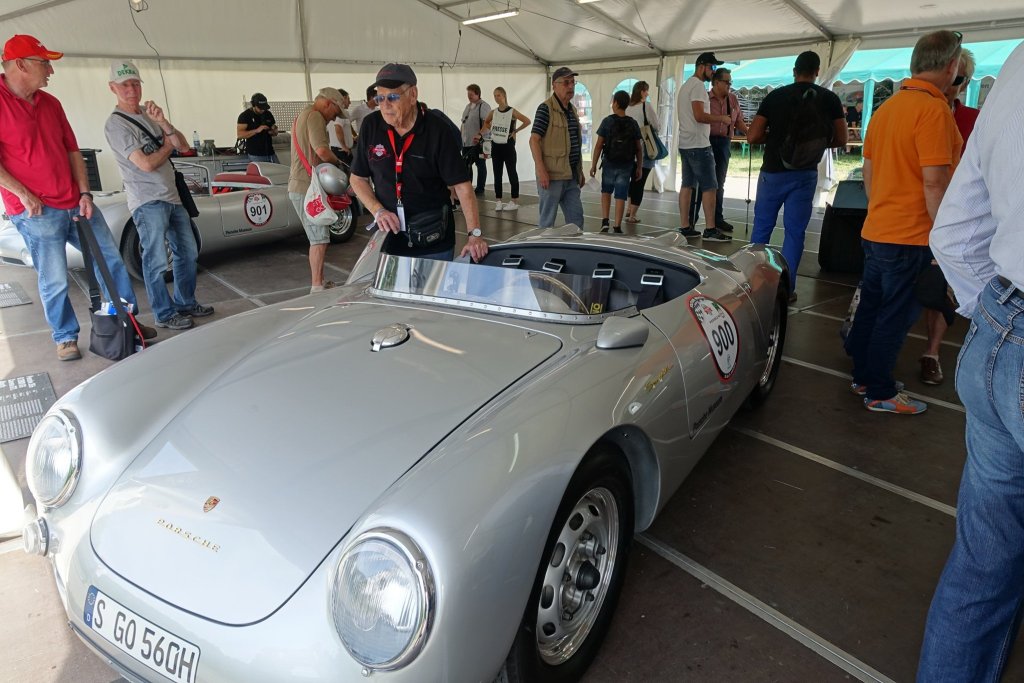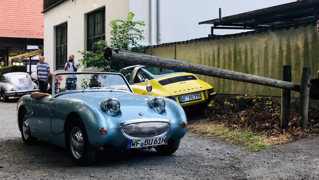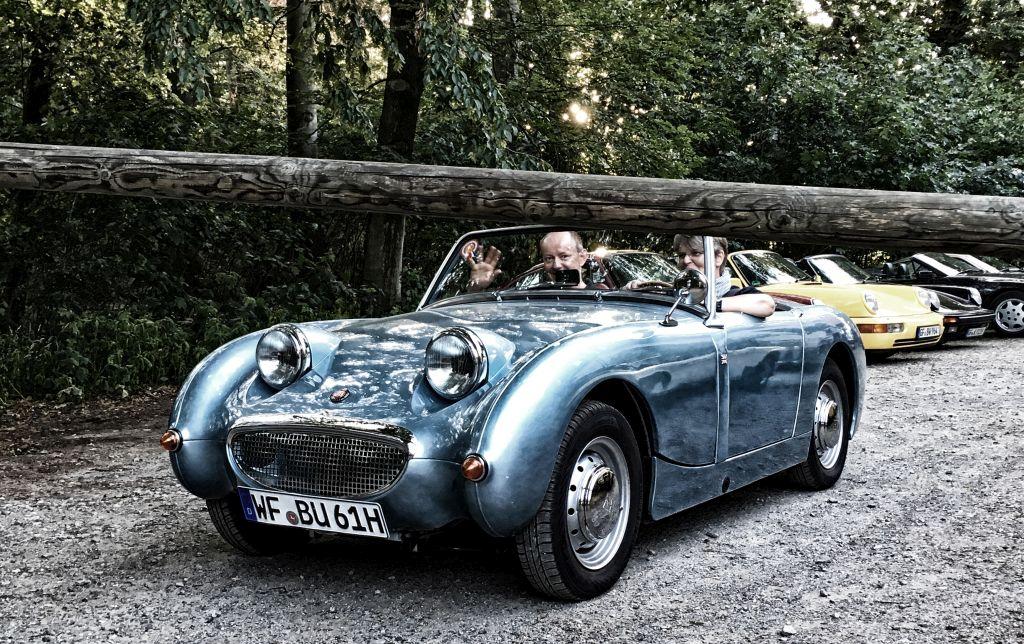 beim Solitude Revival 2019. Unsere Nachbildung zeigt Kerstin und Christian im "Froschauge" mit dem wunderschönen Austin-Healey Sprit.