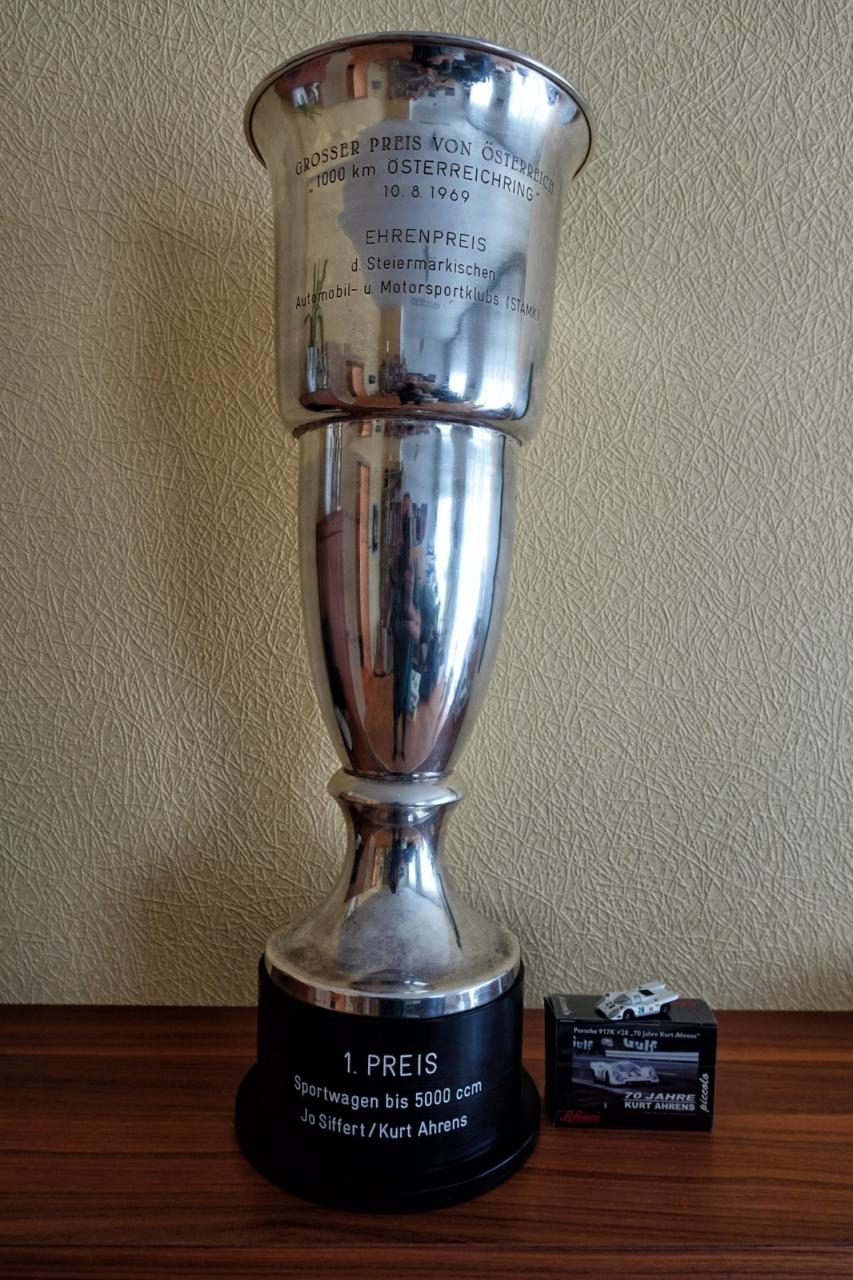 Allererster Sieg des Porsche 917 - Zeltweg 1969 - Jo Siffert / Kurt Ahrens. Der originale Pokal wurde aktuell restauriert, die Patina ist aber geblieben.
