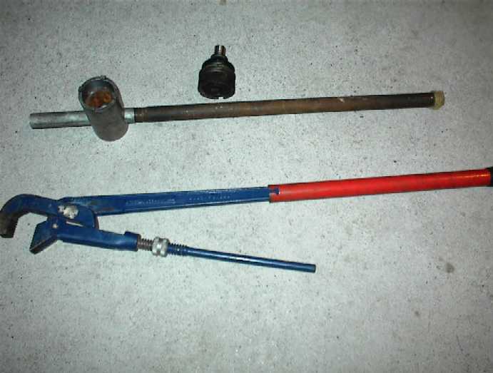 Mit dieser Sonderanfertigung, verlängerter Rohrzange + Eisenstange haben sich die Nutmuttern dann tatsächlich bewegt. Allerdings mußte mein Spezialwerkzeug -durch absenken des Wagens auf ein Kantholz- gegen die Nutmutter gepresst werden, weil die Stege immer wieder aus den Nuten rutschten.