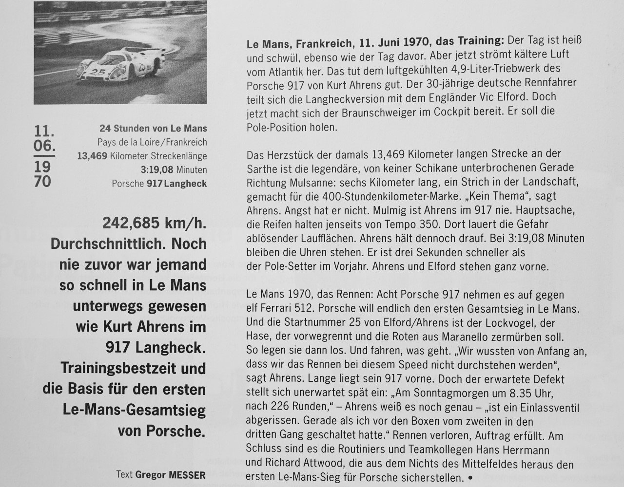 Auf der Seite 98 in der aktuellen Christophorus 378 wird die Pole-Position durch Kurt Ahrens sehr eindrucksvoll beschrieben.