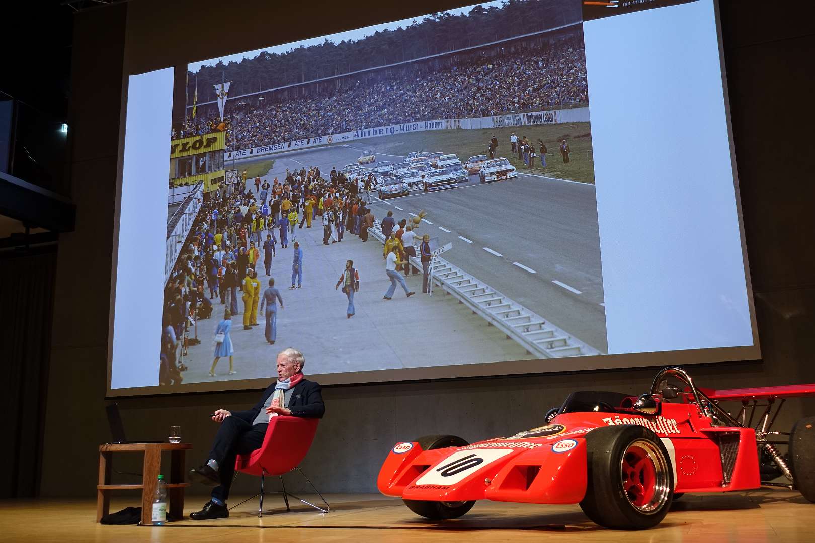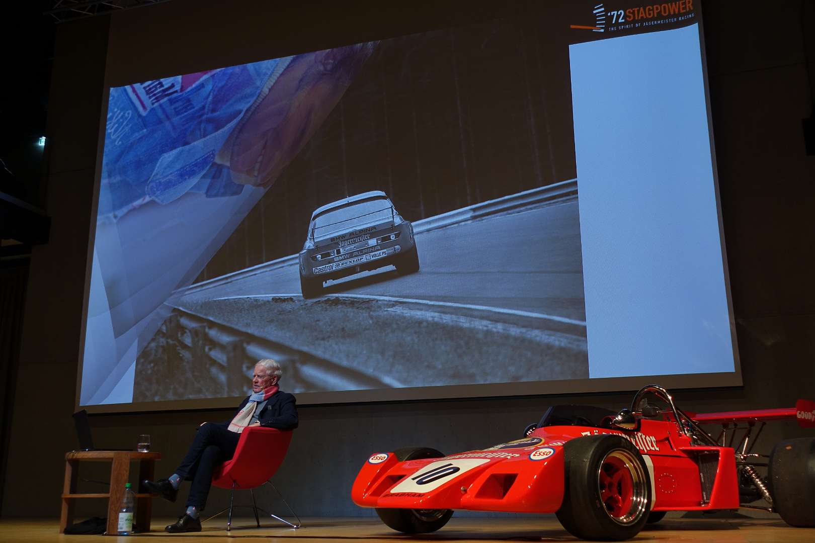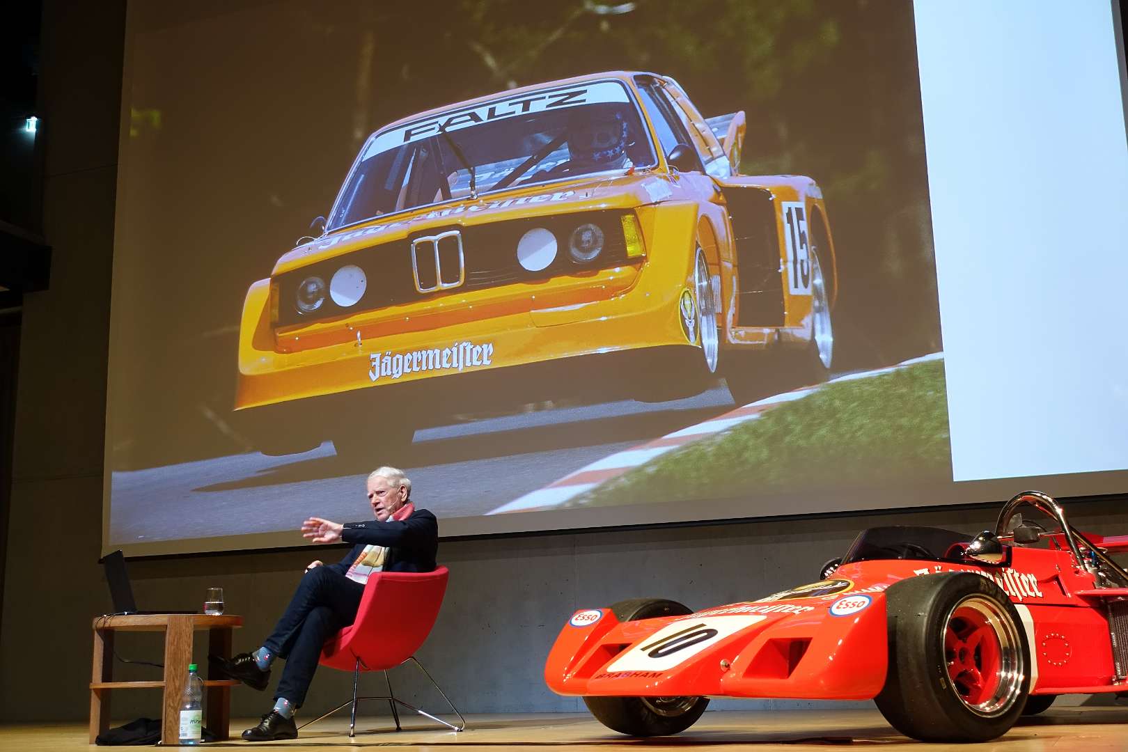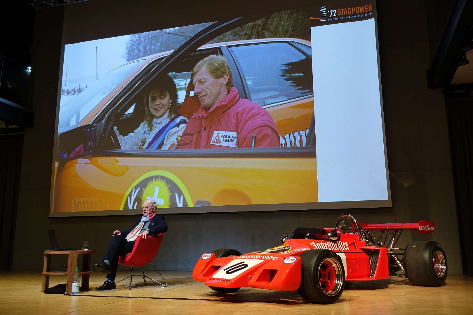 Eckhard Schimpf erzählte, so wie wir es von ihm kennen, vom damaligen Rennsport-Zirkus, wie es damals mit ihm und mit Jägermeister als Sponsoren anfing und was sich dank ihm, daraus entwickelt hat. Er managte fast drei Jahrzehnte lang das Jägermeister-Team, fuhr auch selbst viele Jahre hindurch Jägermeister-Rennwagen und errang rund 80 Siege, darunter beim 1000-Kilometer-Rennen auf dem Nürburgring 1976 und 1979. Er ist Journalist und schrieb etwa 20 Bücher, darunter sind Renntitel wie „Jägermeister Racing“, „Stuck“, „Porsche & Piëch“ und „Kurt Ahrens: Einer dieser verwegenen Kerle“. Die PS.Halle war bis zum letzten Platz sehr gut gefüllt und einige Freude vom Porsche Klassik-Stammtisch Braunschweig waren trotz widrigem Wetter nach Einbeck angereist. Eckhard Schimpf als wahrer Zeitzeuge hatte wieder packende Geschichten und tolle Bilder mit dabei. Natürlich konnte eine Auswahl seiner Bücher erworben werden und sie wurden auch von ihm signiert. Herzlichen Dank an das Team der FörderFreunde des PS Speicher für die Organisation. Mit einer sehr winterlichen und abenteuerlichen Rückfahrt ging es zurück nach BS. Nach rund 3 Stunden Fahrzeit und vielen Umleitungen erreichten wir am frühen Samstag-Morgen Braunschweig.