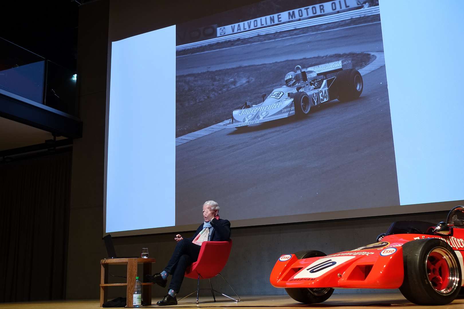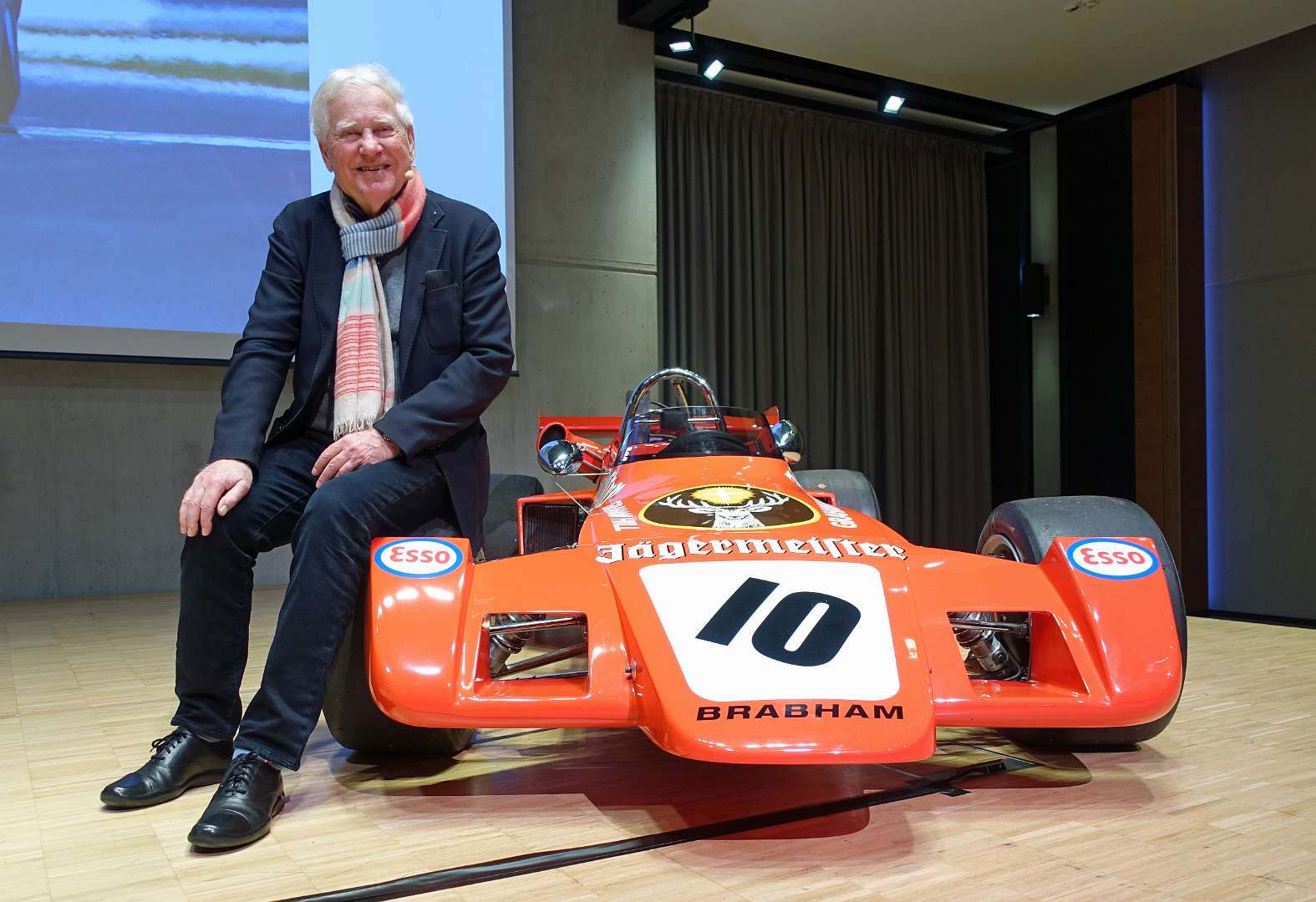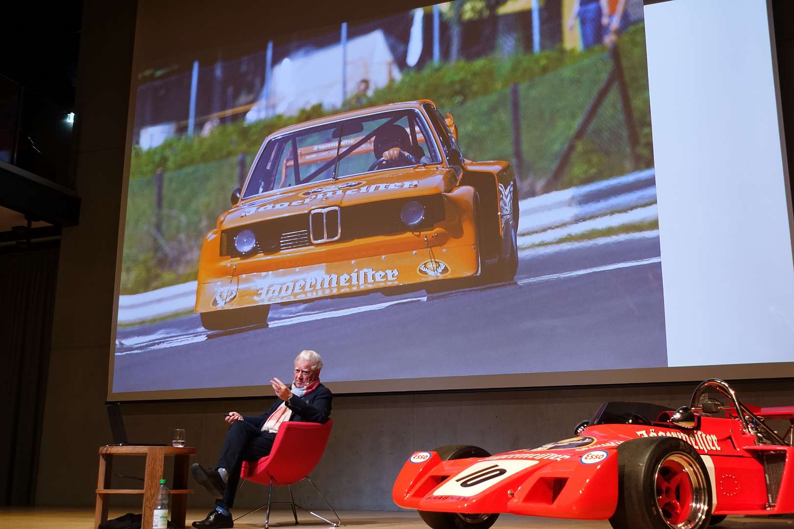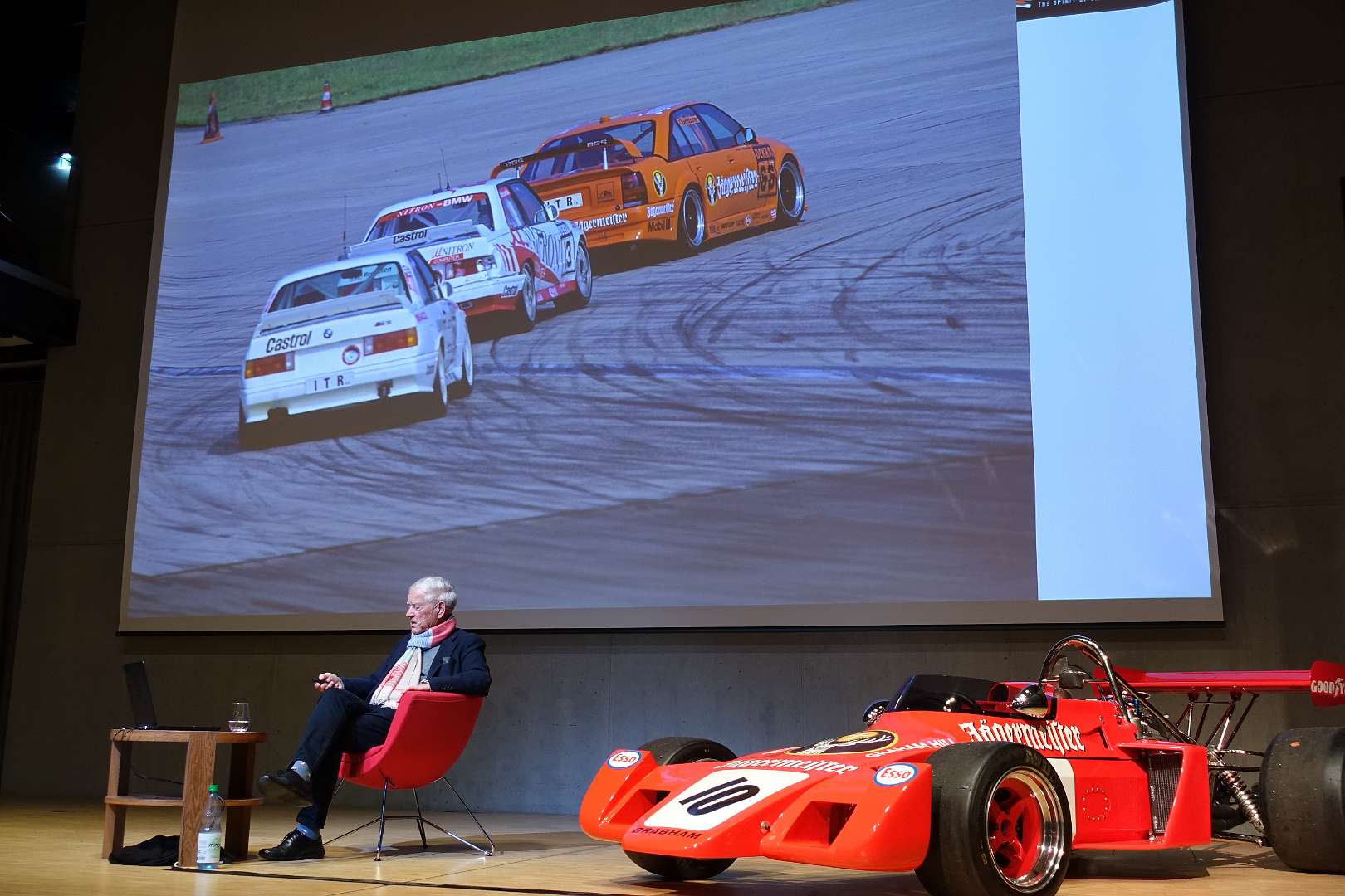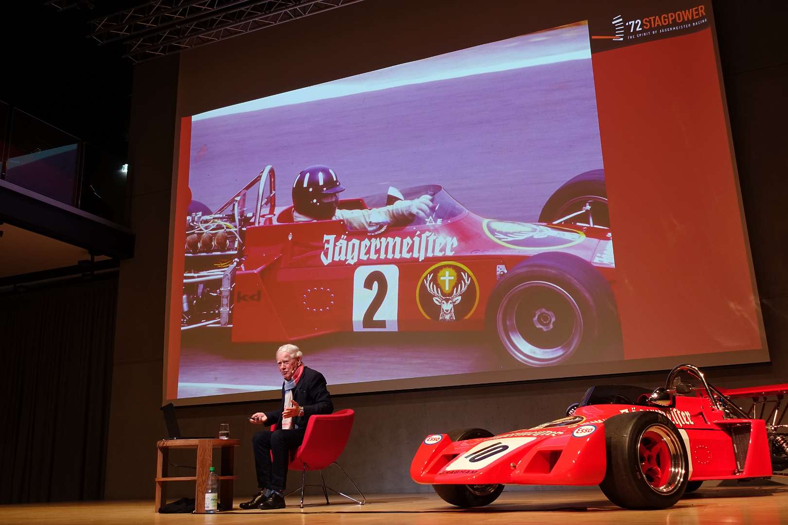Eckhard Schimpf erzählte, so wie wir es von ihm kennen, vom damaligen Rennsport-Zirkus, wie es damals mit ihm und mit Jägermeister als Sponsoren anfing und was sich dank ihm, daraus entwickelt hat. Er managte fast drei Jahrzehnte lang das Jägermeister-Team, fuhr auch selbst viele Jahre hindurch Jägermeister-Rennwagen und errang rund 80 Siege, darunter beim 1000-Kilometer-Rennen auf dem Nürburgring 1976 und 1979. Er ist Journalist und schrieb etwa 20 Bücher, darunter sind Renntitel wie „Jägermeister Racing“, „Stuck“, „Porsche & Piëch“ und „Kurt Ahrens: Einer dieser verwegenen Kerle“. Die PS.Halle war bis zum letzten Platz sehr gut gefüllt und einige Freude vom Porsche Klassik-Stammtisch Braunschweig waren trotz widrigem Wetter nach Einbeck angereist. Eckhard Schimpf als wahrer Zeitzeuge hatte wieder packende Geschichten und tolle Bilder mit dabei. Natürlich konnte eine Auswahl seiner Bücher erworben werden und sie wurden auch von ihm signiert. Herzlichen Dank an das Team der FörderFreunde des PS Speicher für die Organisation. Mit einer sehr winterlichen und abenteuerlichen Rückfahrt ging es zurück nach BS. Nach rund 3 Stunden Fahrzeit und vielen Umleitungen erreichten wir am frühen Samstag-Morgen Braunschweig.