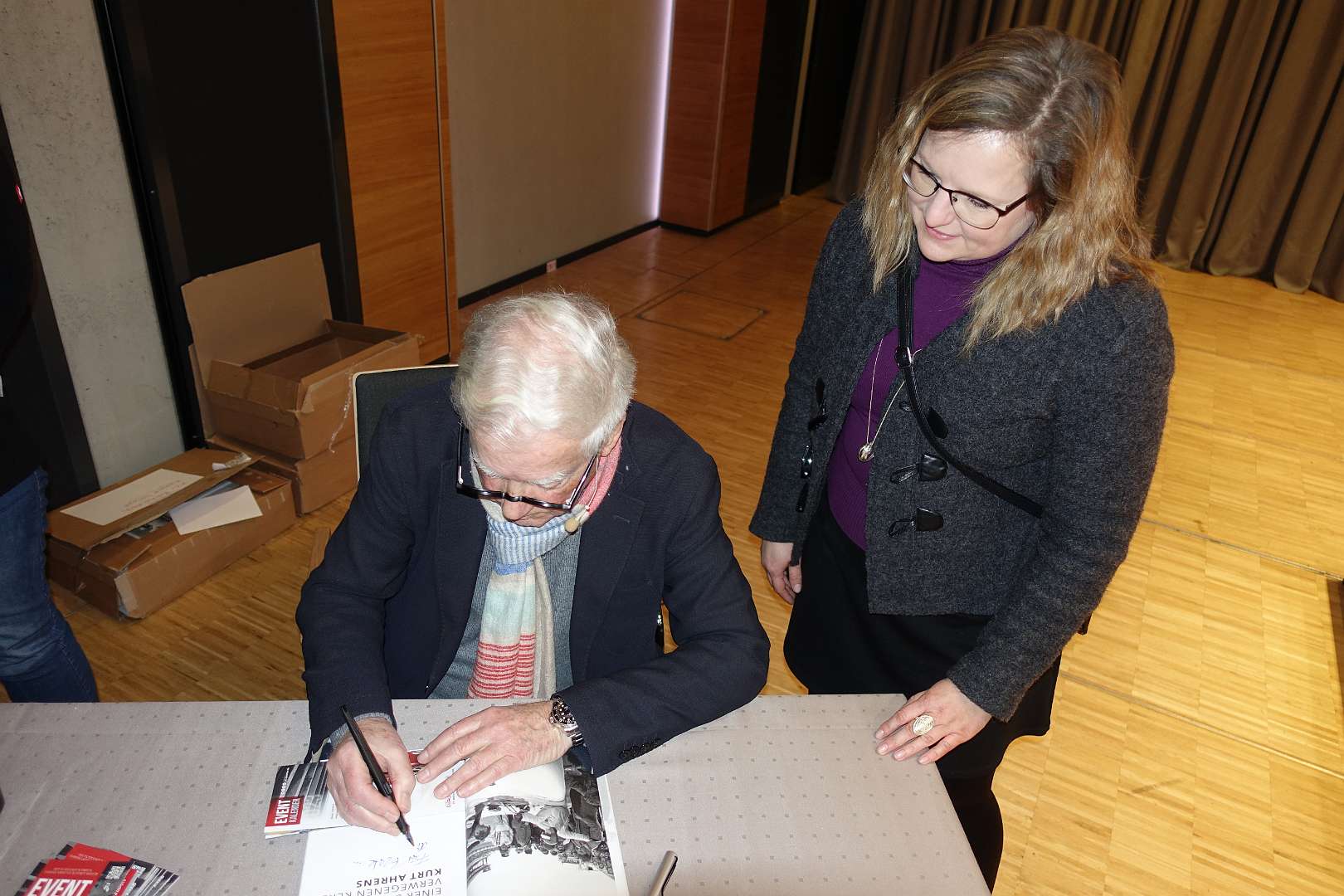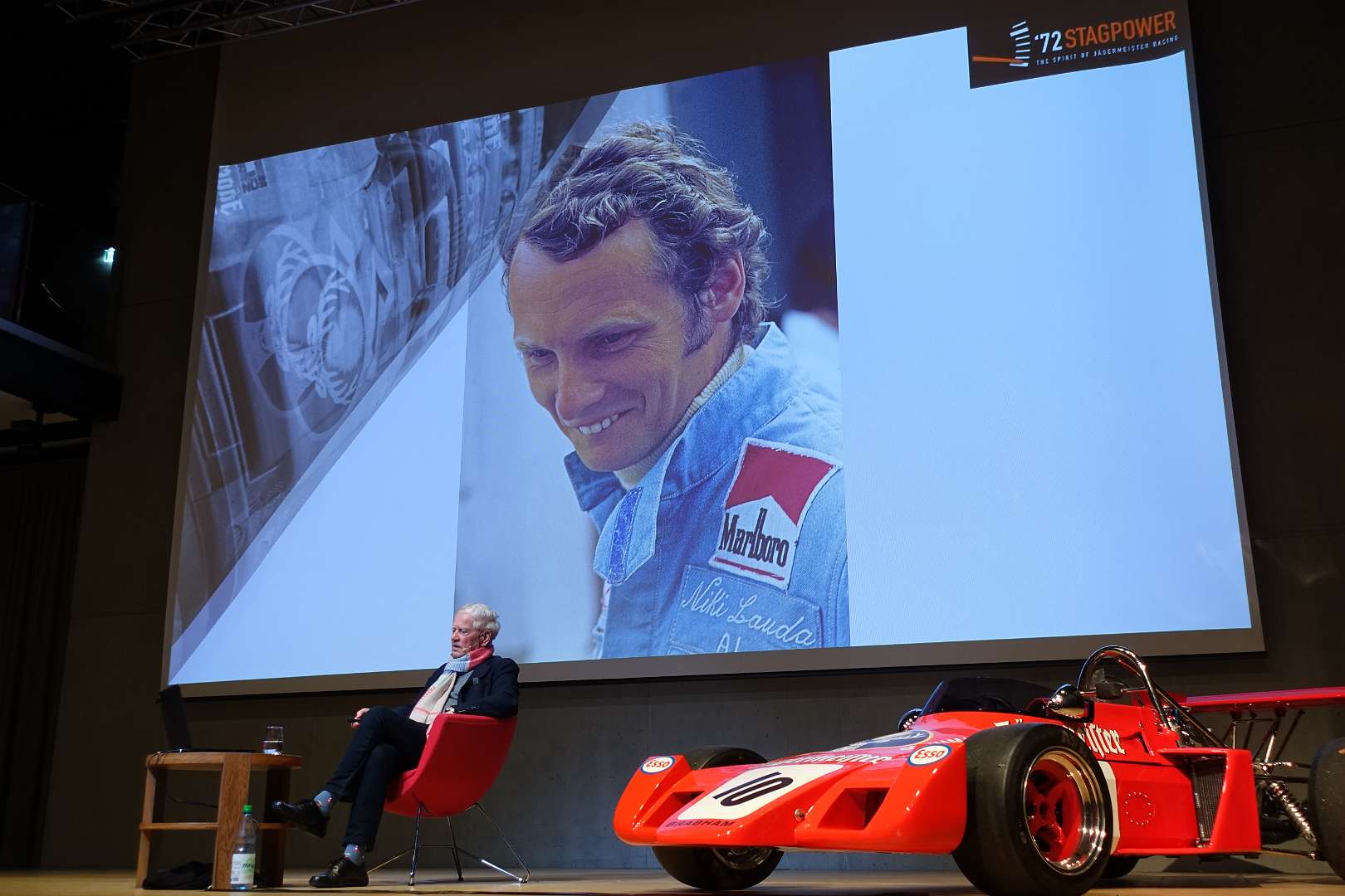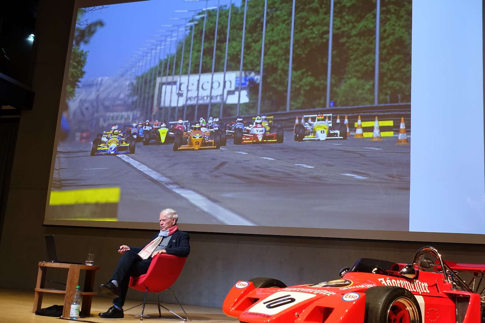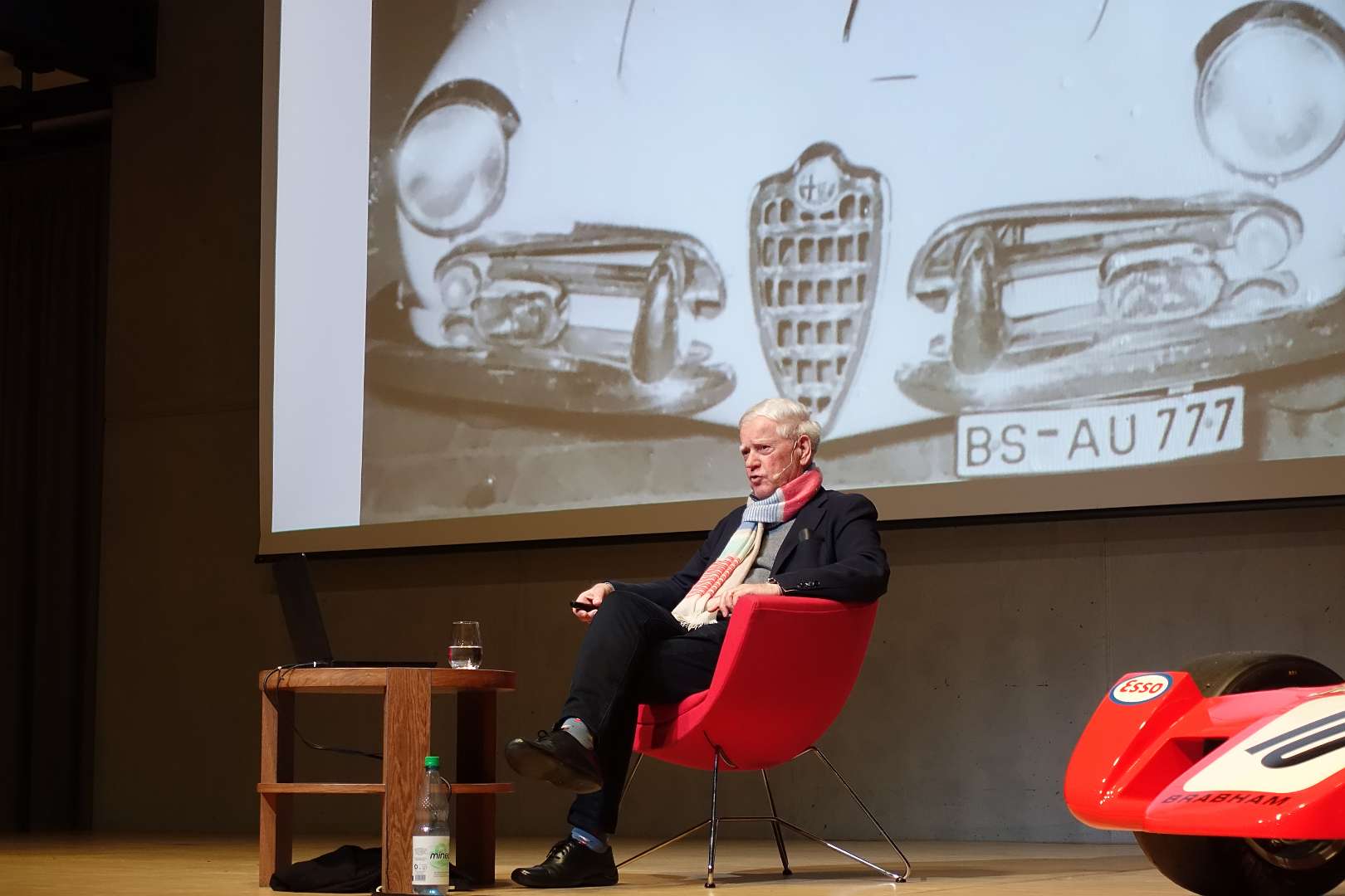 Eckhard Schimpf erzählte, so wie wir es von ihm kennen, vom damaligen Rennsport-Zirkus, wie es damals mit ihm und mit Jägermeister als Sponsoren anfing und was sich dank ihm, daraus entwickelt hat. Er managte fast drei Jahrzehnte lang das Jägermeister-Team, fuhr auch selbst viele Jahre hindurch Jägermeister-Rennwagen und errang rund 80 Siege, darunter beim 1000-Kilometer-Rennen auf dem Nürburgring 1976 und 1979. Er ist Journalist und schrieb etwa 20 Bücher, darunter sind Renntitel wie „Jägermeister Racing“, „Stuck“, „Porsche & Piëch“ und „Kurt Ahrens: Einer dieser verwegenen Kerle“. Die PS.Halle war bis zum letzten Platz sehr gut gefüllt und einige Freude vom Porsche Klassik-Stammtisch Braunschweig waren trotz widrigem Wetter nach Einbeck angereist. Eckhard Schimpf als wahrer Zeitzeuge hatte wieder packende Geschichten und tolle Bilder mit dabei. Natürlich konnte eine Auswahl seiner Bücher erworben werden und sie wurden auch von ihm signiert. Herzlichen Dank an das Team der FörderFreunde des PS Speicher für die Organisation. Mit einer sehr winterlichen und abenteuerlichen Rückfahrt ging es zurück nach BS. Nach rund 3 Stunden Fahrzeit und vielen Umleitungen erreichten wir am frühen Samstag-Morgen Braunschweig.
